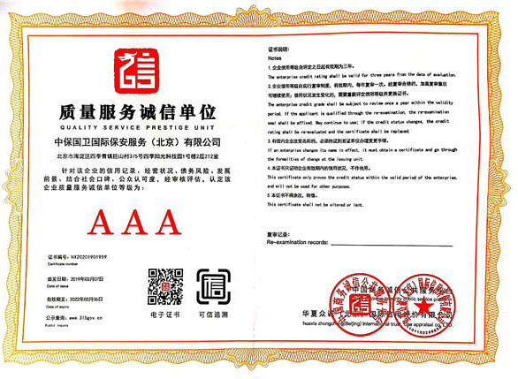 中保國衛(wèi)國際保安服務(北京)有限公司,屬中保國衛(wèi)集團旗下子公司。能全方位的為大型客戶提供優(yōu)質的安保、押運服務,是集人防和技防于一體的新型正規(guī)化綜合安保押運服務企業,提供人防、物防、技防、聯網報*、非武裝押運等安防相關的一站式服務。